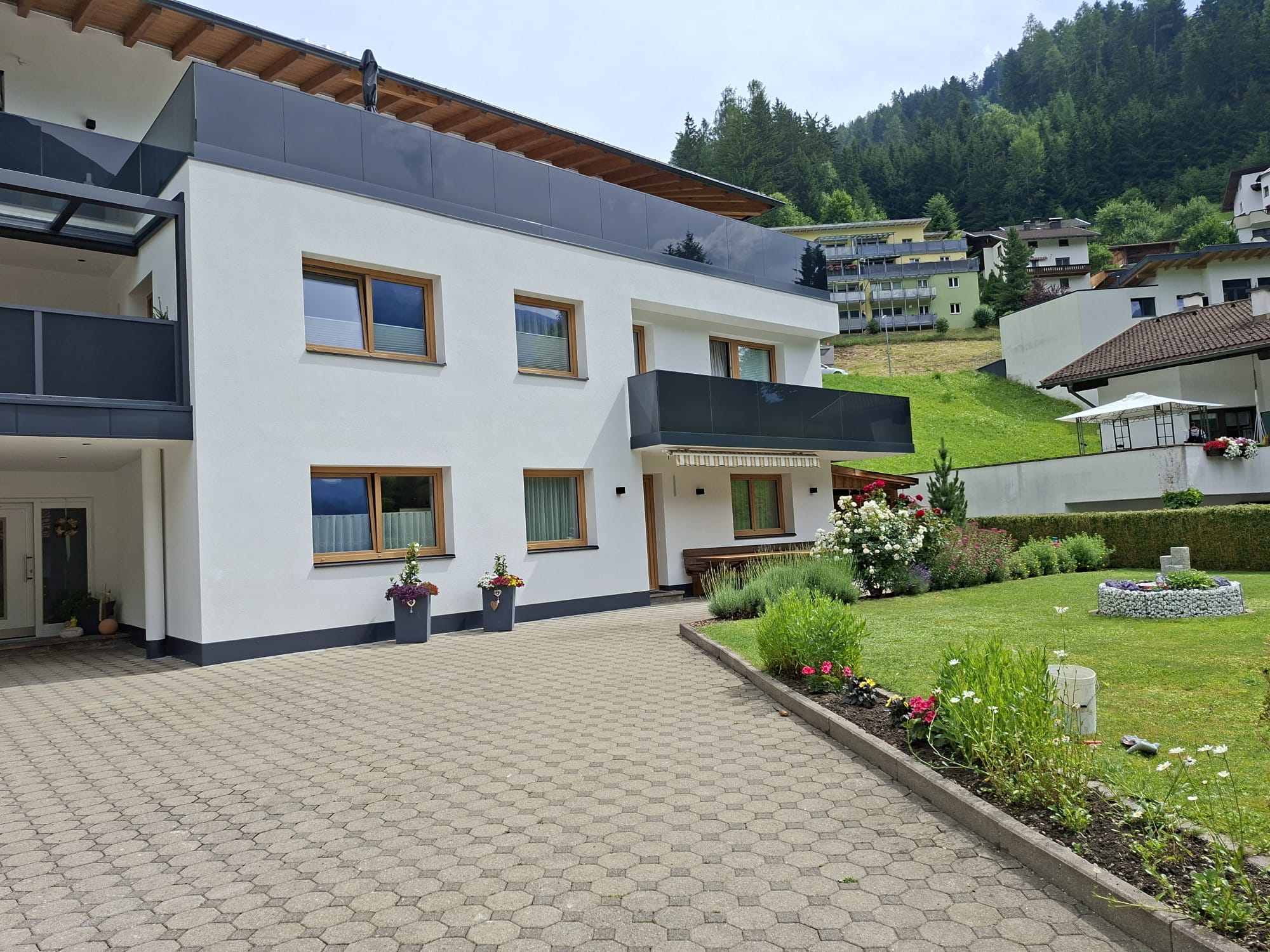 Ruhig und sonnig – von der Bergwelt umgeben – liegt unser Haus. Unsere Komfortferienwohnung (70m²) ist für 2-6 Personen geeignet. Sie besteht aus einer bestens ausgestatteten Wohnküche mit Geschirrspüler, Mikrowelle, Backrohr, SAT-TV. 2 getrennten Schlafzimmern, Bad und WC sind separat. Föhn, Bett-, Toilettenwäsche und Frischbrotdienst sind selbstverständlich.